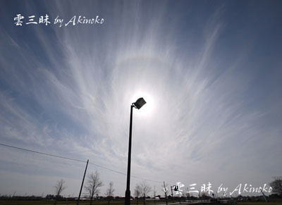 注意:いろんな本に「巻層雲は暈ができる」と記述されていますが、誤りまたは不正確。巻層雲で暈ができないこともあり、正確には「暈ができることが多い」。 |