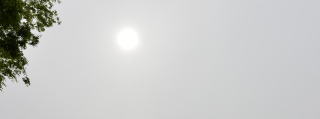 空の青色が全体的にかすんだように白っぽく見える。 |