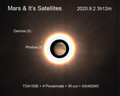 衛星: フォボス 11.3等・ダイモス 12.4等