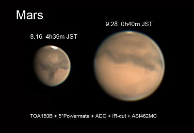 スタートで出遅れたものの、8月中旬からの好天とダストストームのないクリアな火星面をトコトン楽しむことができた。