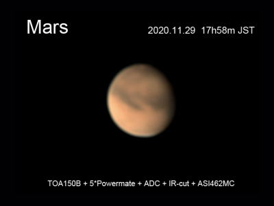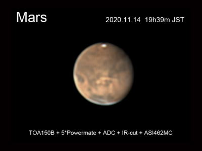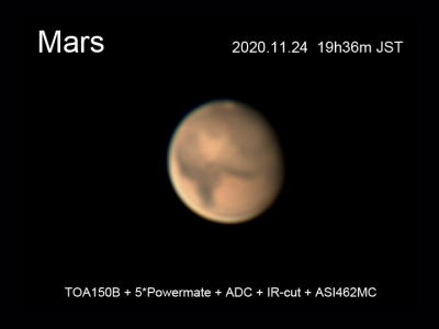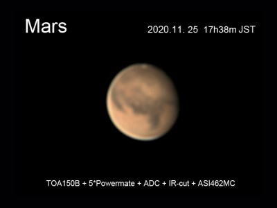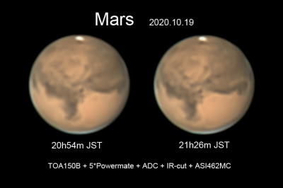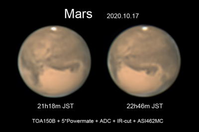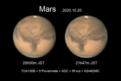 しかし、その後は心配していたダストストームの発生もなく、最接近までクリアな火星像を楽しむことができた。