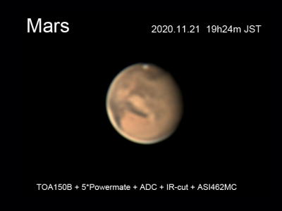 21.0” CM=283° 中央に火星の象徴大シルチス |
