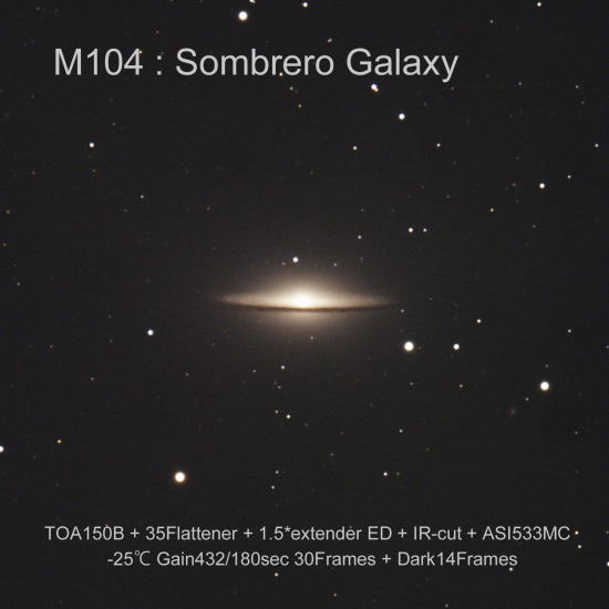 2022年3月 M104 : ソンブレロ星雲 8.3等・8.9' (おとめ座) |