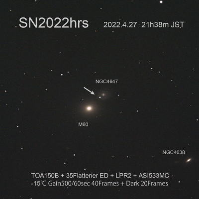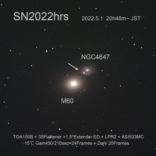 2022年4月 M60と隣のNGC4647に出現した超新星2022hrs (おとめ座) |
