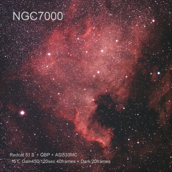 2022年5月 NGC7000 : 北アメリカ星雲全景 (はくちょう座) |