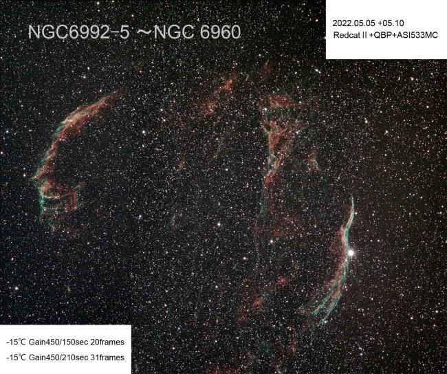 2022年5月 NGC6992〜6960 : 網状星雲全景 (はくちょう座) ※2コマ合成 |