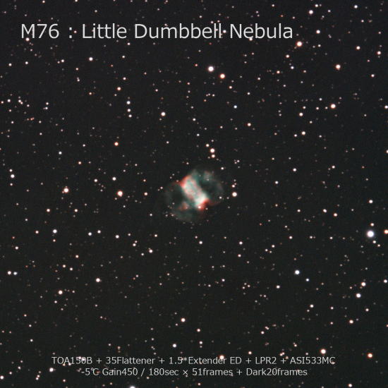 2023年7月 M76 : 小亜鈴状星雲 12.0等 視直径 4.8' (ペルセウス座) |