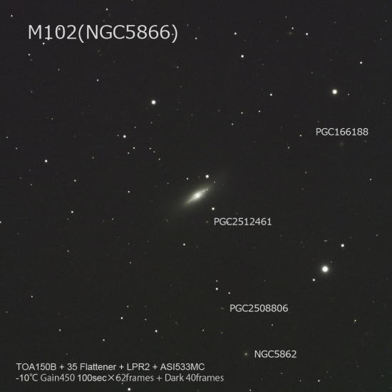 (M102は行方不明M天体。このNGC5866が該当天体ではないかとされている) |