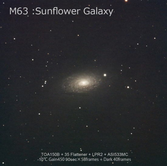 2022年3月 M64 : 黒目銀河 8.5等・9.3' (かみのけ座) |