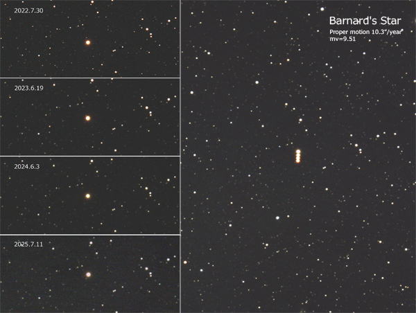 2022年7月〜2025年7月 バーナ−ド星の固有運動 天文ガイド誌2025年9月号入選 |