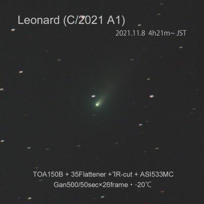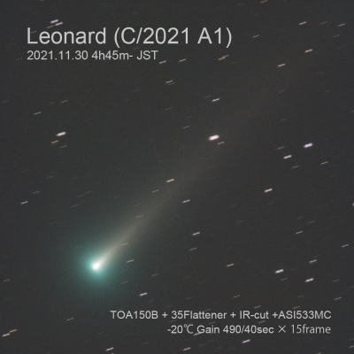 尾が伸びて彗星らしい姿 2021年11月30日 |