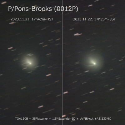 ポン-ブルックス彗星4度目のバースト24時間の変化 6-7等