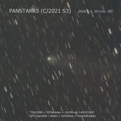 小さな核・コマに大きく広がる尾が見える 2024年5月 |