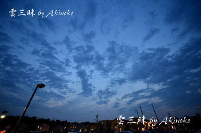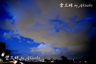 | 日没と共に空が暗くなって、空にはわずかに明るさが残る時間帯。雲も変身の準備です。 |