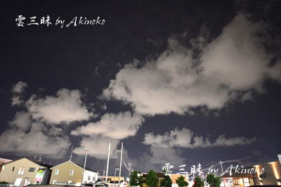 | 幸か不幸か、夜間は町中ほど雲が見やすいのです。それだけ無駄なエネルギーが使われている(空に打ち上げられている)と言うことでもあります。一般的に夜の雲の方が厚みがなく薄いことが多いなど、昼とは別の顔を見せてくれます。。 |