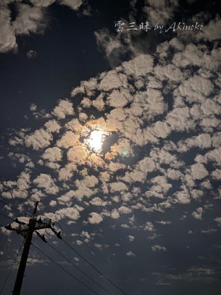 高積雲は半透明なので、月をバックに白く浮かび上がる。 |