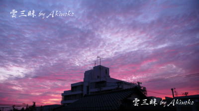 巻積雲が作る紫色の空。あっという間に色は消えて、モノクロの空に戻る。 |