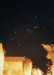 | モンキーマイアの夜。 南半球のオリオン座は逆さまに沈んでゆく。もちろん,空にはあこがれの南十字が輝き、やマゼラン星雲はぽっかりと浮かんでいる。星好きにはたまらない夜。 夜中、コテージの周りを三脚とカメラを持ってうろつく、怪しい日本人は私です。 |