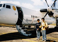 | パースからシャークベイへ移動 パースからシャークベイまで飛行機で移動。飛行場はもちろんそれらしくなく、平原に小さな小屋があるだけ。そこがまた、「はるばるやってきたなぁ」という雰囲気にさせてくれる、泣かせる演出(ではないんだけど、勝手に思う)。 ここから3日間かけて車で移動しながらパースへ向って南下。 |