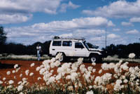 | ワイルドフラワー ガイドさんによると、今がベストシーズンだという。走っても走っても、道路の両脇は一面の花。ウトウト寝てしまって、起きても、まだ花花。数時間おきに、白、黄色、ピンクと色もかわる。すごいとしかいいようがない。 |