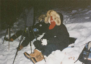 −30度の中での撮影、オーロラという対象を考えると、カメラ・フィルムをはじめ撮影機材にも気をつける必要があります。 |