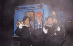 | 後ろに見えるのが雪上車 2日目はこれに乗って山頂へ行きました。 この雪上車は天井がガラス(アクリル?)で星を見ながら30分の旅。うるさいし,揺れるし快適とはいえませんが、地球の果てまでオーロラを見に来たと実感します。予約はプールのアクティビティ受付へ。 |