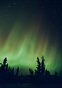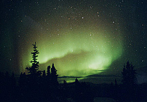 どんどん形が変わっていき、この次のコマには全く別のオーロラのように写ります。写真左端の方からまるでタバコの煙りが飛んでくるようにオーロラが走ってきます。 |