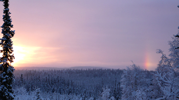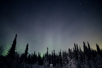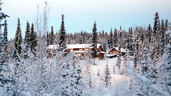 ロッジは森の中にひっそりとたたずむ。この美しい林は、オーロラの前景として大変美しいシルエットを見せるため、オーロラ帯のはずれにありながらここを撮影地に選ぶオーロラ好きも多い。 |