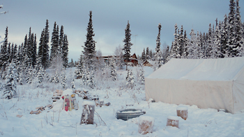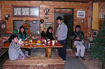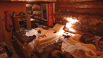 収納スペースもあり、快適。しかし、ちょっと寒かった。アラスカでは普通部屋の中は異常に乾燥して、おまけに暑いのだが、ここは少し違っていた。 |