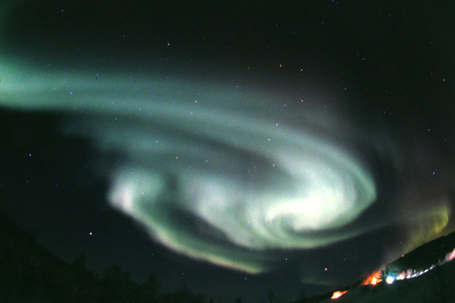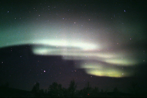 DATE 2003.12.26 アラスカ・チャタニカにて Nikon FM3A + Ai Nikkor 24mm F2 ・Fisheye Nikkor16mm F2.8 フジクローム プロビア400 露出 10秒・15秒 |