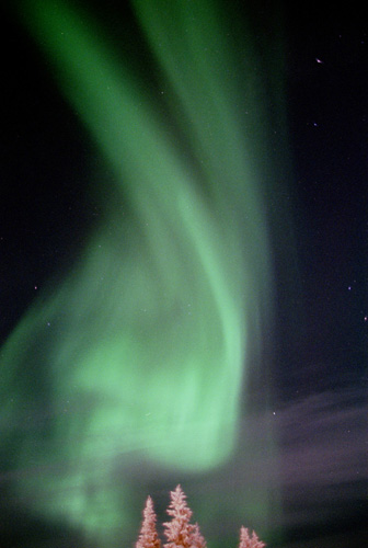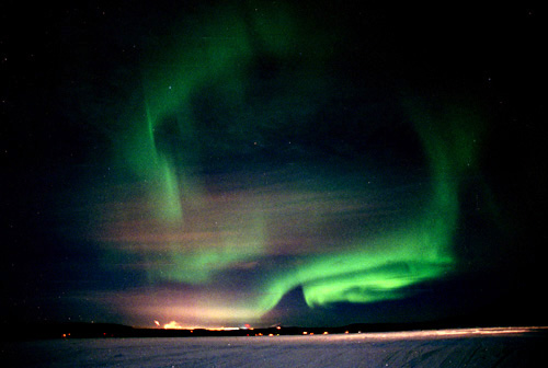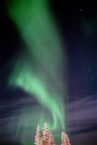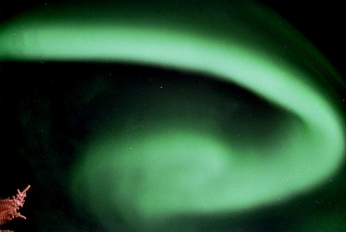 4日間のうち、晴れたのは最終日のほんの10分ほど。その晴れ間に全天をはね回るオーロラを見ることができた。