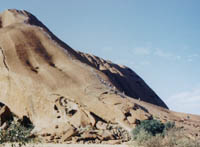 エアーズロックを発つ日、初めての快晴。飛行機が午後発なのでついに念願の登山へ。よかった!!登山口を横から見た写真です