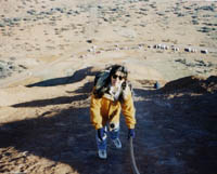 ここでいままで30人が転落死しているらしいです(98年現在)。入り口右手には、死んだ人たちのプレート(25センチ×30センチくらい)が埋められていて、「仲間入りしたくないなぁ」と。