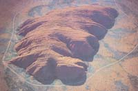 リゾートから20Kmのところにぽっかりと(本当にポッカリと)そびえるエアーズロック。なーんにもない平原に400mもの高さの岩がある。それだけでも十分感動ものです。