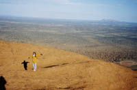 頂上は広く、多少はでこぼこがあるが座ったりしてくつろぐことができます。右上地平線に、隣のマウントオルガが見えます。