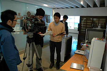 2006.3.20 中谷宇吉郎雪の科学館でNHKの取材 当初、私の仕事場での収録を要請されていましたが、雪の科学館に展示されるのを機会に、科学館で収録が行われました。資料など準備していましたが、私のインタビューはほんのわずかでした。ちょっと、拍子抜けしました。 |