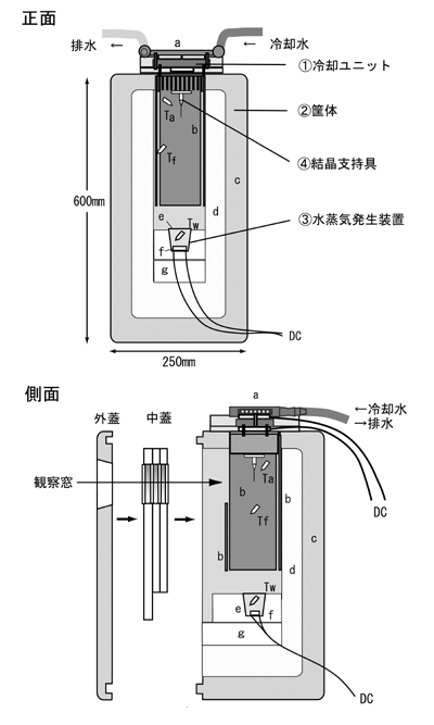 | ここに掲載しました画像・図に関しては複製・無断使用をお断りします。詳細は2005年日本雪氷学会誌「雪氷」vol.67,No.4に掲載されていますのでご覧下さい。また本装置は実用新案 第3106836号に登録されております。 |