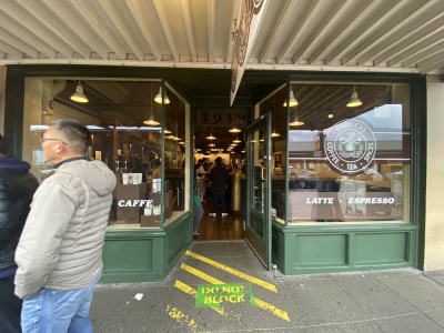 | ガイドさんに「時間的に可能ならスタバの1号店に行きたい」と希望を伝えたところ、快くOK。おまけにスタバ本社、さらに新しくなったマリナーズのT-モバイルパークまで連れて行ってくれた。 |