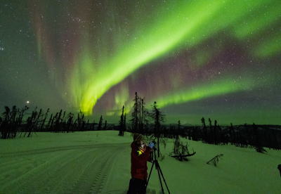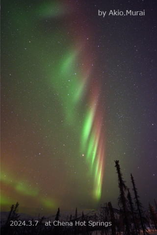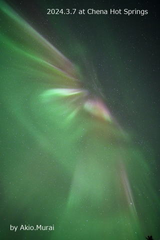 | 22:50頃から空が濁り始め、オーロラが次第に活発化。残念ながらブレイクすることはなかったが、しばらくの間動きのあるオーロラを楽しむことができた。 |