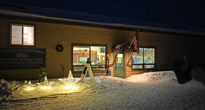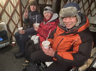 テントロッジの中は暖房で暖かいけど、50人も入ると大混雑 |