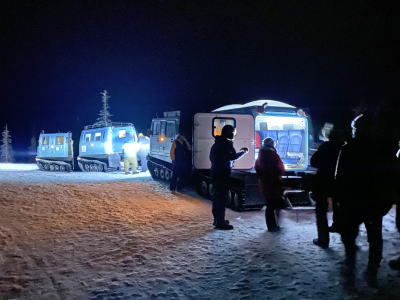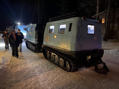 雪上車はギュウギュウ詰め、おまけにグラグラ揺れる
