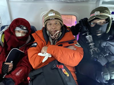 左下に待機所になる「ゲル」、中央下に待機している雪上車