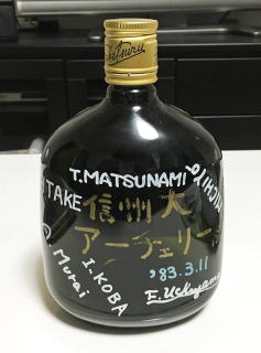 手に持っているウイスキー・ボトルは今でも家に飾ってある → |