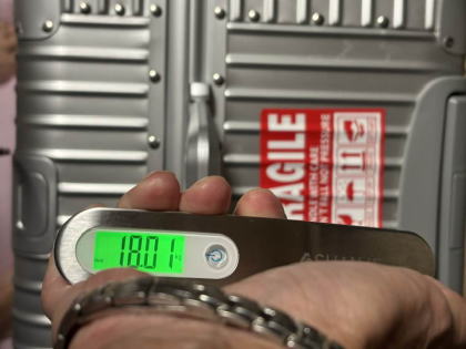 以前アラスカ・フェアバンクスでチェックインの際に「1ポンド重いからノー!」と言われて、大変な目にあったことがある。また、今年2月には、ナナセが小松空港で持ち込み手荷物の重量オーバー(!)で荷物を下ろされたので、荷物の重量はトラウマになってる。 |