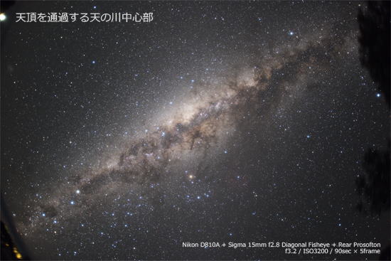 天頂を通過する天の川中心部