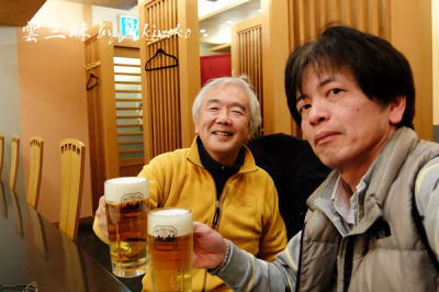 夜はやっぱり飲みに出る。興和:藤野さん、オホーツク流氷センター:桑原さんと。 |