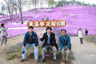 北見工大:亀田、原田先生と 芝桜公園で |