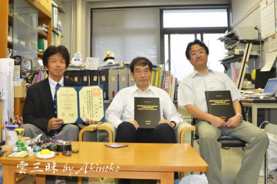 北見工大亀田先生・高橋先生と 学位授与式のあとで |