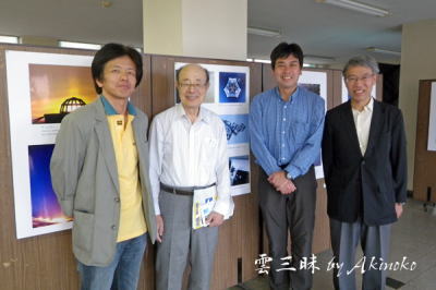 2025年11月5日 清水さん、来沢した天体写真家:中西さん、外山さんと月の石の展示会で |