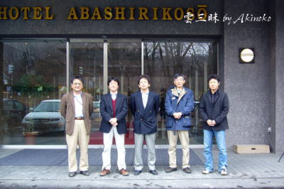 左から北見工大院生・牛塚君、北見工大・原田先生、極地研・平沢先生、亀田先生と俺 |